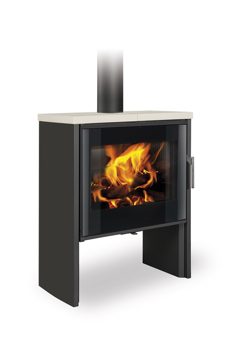Piec kominkowy idealnie pasuje do nowoczesnych wnętrz. Drzwiczki pieca mają designerski nadruk na wielkopowierzchniowym przeszkleniu. Posiada system CDP – centralne doprowadzenie powietrza zewnętrznego. Standardowo możliwe jest podłączenie górnego lub tylnego odprowadzenia spalin. Dzięki dopływowi powietrza wtórnego, które opływa szybę drzwiczek, nie dochodzi do osadzania zabrudzeń. Komora spalania wyłożona szamotem.  Regulacja dopływu powietrza pierwotnego i wtórnego za pomocą jednego elementu sterującego. W dolnej części pieca można przechowywać mniejsze zapasy drewna.